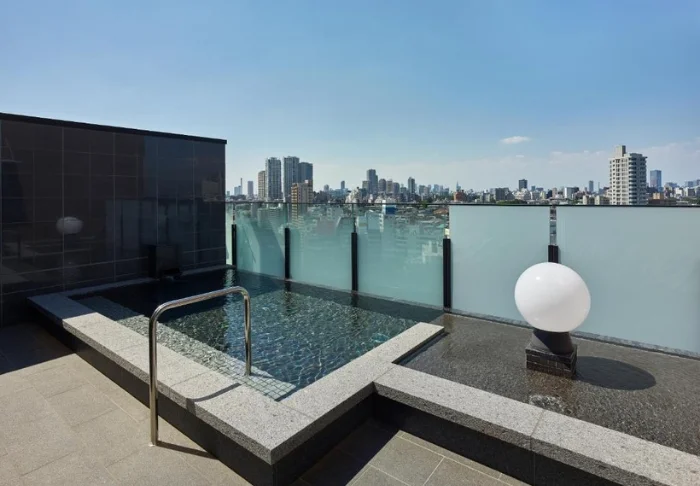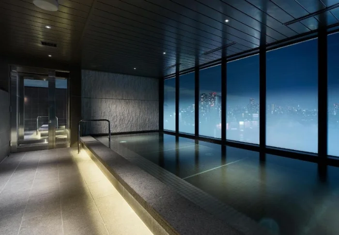 Auf der obersten Etage des Hotels befindet sich der beliebte Wellnessbereich mit großen Fenstern, die einen Blick über Tokio bieten – eine ruhige Oase inmitten der geschäftigen Stadt. Hier können Sie ein traditionelles japanisches Bad genießen und zur Ruhe kommen.