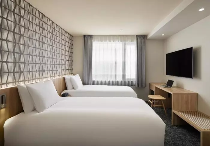 Das 21-stöckige Hotel verfügt über 304 Zimmer, die einen schönen Blick auf die Stadt bieten. Alle Zimmer sind in ruhigen, hellen Farben gehalten und mit modernen Annehmlichkeiten ausgestattet, um einen angenehmen Aufenthalt zu gewährleisten. Alle Zimmer verfügen über kostenlosen WLAN-Zugang, eine Klimaanlage, einen Safe, einen Minikühlschrank, einen Wasserkocher für Tee und Kaffee sowie einen Flachbildfernseher mit Zugang zu verschiedenen Streaming-Diensten. Die Betten sind bequem, und es gibt sowohl weiche als auch feste Kissen, um Ihre persönlichen Vorlieben für einen guten Schlaf zu erfüllen. Auch die Badezimmer sind modern und mit Regenduschen, Toilettenartikeln und Haartrocknern ausgestattet.