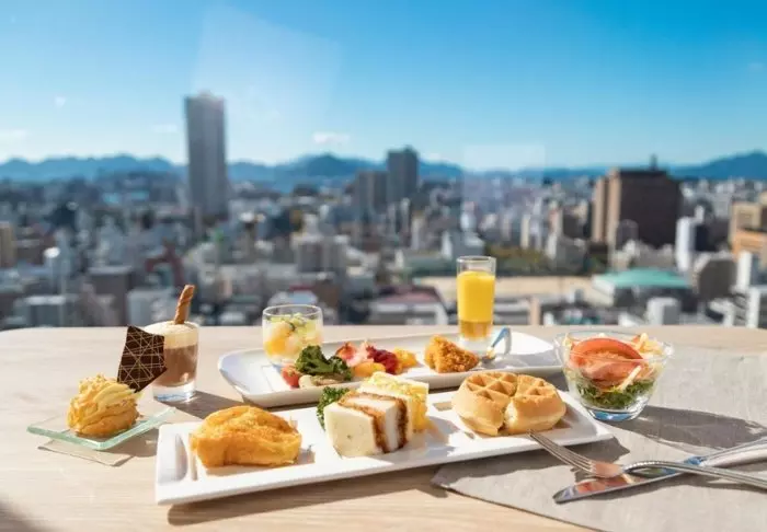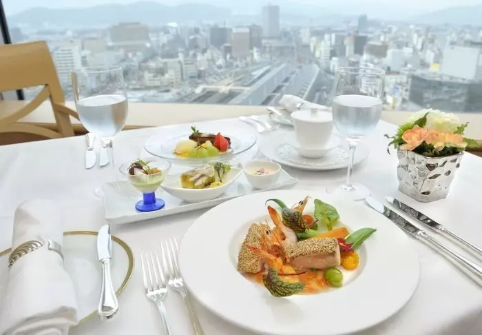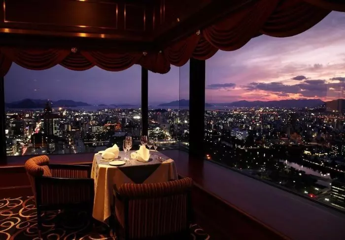 Das Hotelrestaurant, Confrere, auf der 25. Etage, serviert eine exquisite Mischung aus japanischen und internationalen Gerichten, zubereitet mit lokalen Zutaten. Das i-Tüpfelchen ist die Aussicht auf Hiroshima und die umliegenden Setouchi-Inseln.
