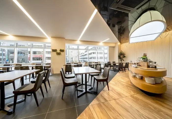 Das Hotel bietet ein hervorragendes Frühstücksrestaurant, in dem frische, regionale Zutaten großgeschrieben werden. Dort werden sowohl japanische als auch westliche Gerichte serviert.