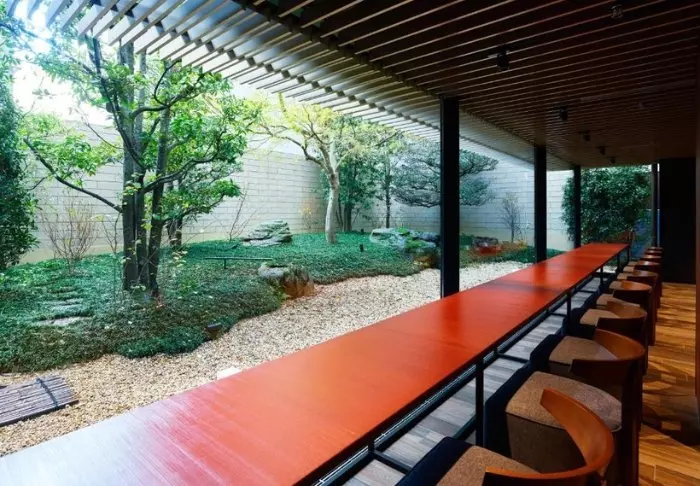 Das Restaurant Noukabanzai Mantei hat morgens und abends geöffnet. In diesem wird das Essen noch auf traditionelle Weise, wie es in den nahegelegenen Provinzen Kaga und Noto üblich ist, zubereitet. Und auch Gemüse, Fleisch und Gewürze stammen aus diesen Regionen. Vom Restaurant aus können Sie den wunderschönen Zen-Garten mit Steinen, Kies, Büschen und Bäumen bewundern.