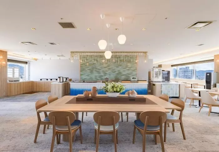 Im Restaurant des Hotels, dem VistaCafé, wird jeden Morgen ein japanisches und westliches Frühstück serviert. Setzen Sie sich und blicken Sie aus den riesigen Fenstern. Genießen Sie die wunderschönen Farben, die zu jeder Jahreszeit anders sind.