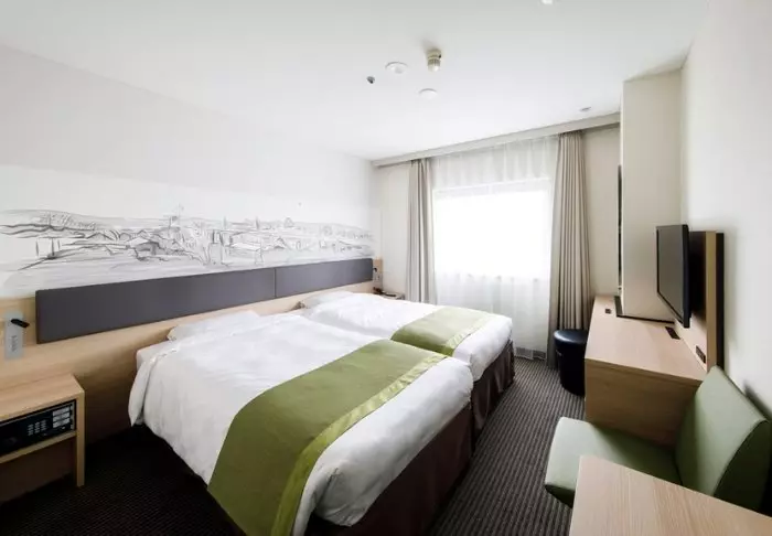 Die Zimmer sind gut ausgestattet und geräumig (27m2), was in Japan nicht an vielen Orten üblich ist. Alle Zimmer verfügen über Klimaanlage, WLAN, Wasserkocher sowie TV und Telefon. Es gibt auch einen Schreibtisch und einen kleinen Sitzbereich. Die Badezimmer sind mit Badewanne und Dusche sowie Haartrockner und kostenlosen Toilettenartikeln ausgestattet.