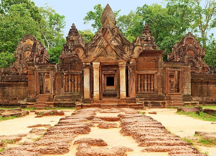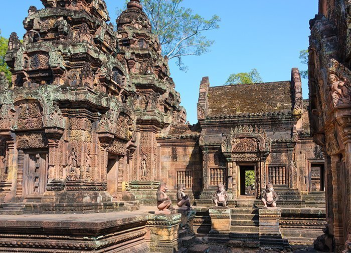 Sie werden von Ihrem Hotel abgeholt und fahren ca. 1 Stunde lang von Siem Reap zum Tempel Banteay Srei, welcher auch rosaroter Tempel genannt wird. Der Tempel gehört zu den schönsten und wichtigsten Tempeln Angkors. Er ist einer der kleinsten Tempel, aber wirklich gut erhalten, verziert mit einigen der edelsten und schönsten Werke aus rosarotem Sandstein. In ihm sind zwei prunkvoll geschmückte Bibliotheken sowie mehrere hunderte Figuren und Götter an den Wänden untergebracht, Abbilder von Szenen aus der hinduistischen Geschichte. Danach geht es weiter zum kleinen Tempel Banteay Samré, der auf mehrere Arten an Angkor Wat erinnert, speziell der Stil der Türme und der Balustraden. Nachdem Sie die Schönheit des Tempels genossen haben, geht es wieder zu Ihrem Hotel zurück.