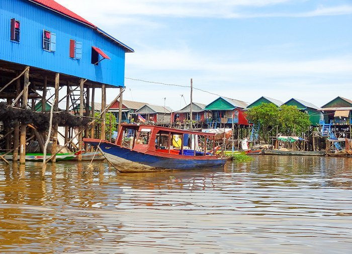 Sie fahren zuerst mit dem Auto, dann mit dem Boot zu einem der vielen Fischerdörfer am See. Dort können Sie durch das Dorf spazieren, sehen und hören, wie das Leben für die vielen Familien, die sich primär vom Fischfang ernähren, abläuft. Die meisten Familien leben am Seeufer in charakteristischen Häusern auf langen Pfosten, sodass der hohe Wasserstand während der Regenzeit kein Problem ist. Dann verwandeln sich die schmalen Gassen des Dorfs nämlich auch in kleine Kanäle. Während der Trockenzeit, wenn der Wasserstand niedrig ist, können Sie die hohen Pfosten sehen. Jeder Zeitraum hat deshalb seinen Charme. Je nach Jahreszeit besuchen Sie entweder das Fischerdorf Kampong Phluk oder Kampong Khleang.