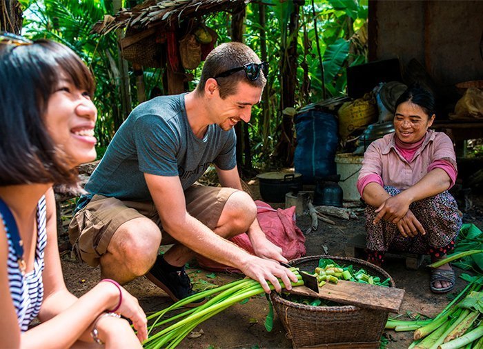 Bei diesem Halbtagesausflug zur Kochschule lernen Sie, wie man kambodschanische Khmer-Spezialitäten zubereitet und gleichzeitig die biologische Landwirtschaft um die Kochschule unterstützt. Die Landwirtschaft wird durch die internationale Organisation Agrisud unterstützt, die sich für ein Wirtschaftswachstum im Agrarsektor einsetzt, indem kleine Familienhöfe unterstützt werden.