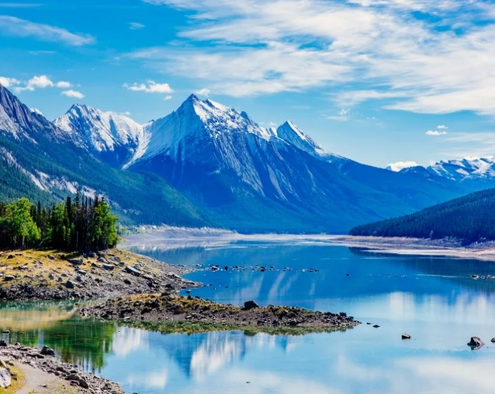 Den überwiegenden Teil des Tages verbringen Sie auf eigene Faust im Jasper Nationalpark. Zu den Höhepunkten des Parks gehört der schöne Maligne Lake, der den Betrachter mit azurblauem Wasser umgeben von Berggipfeln und Gletschern verwöhnt. In den Sommermonaten kommen viele Besucher zum Maligne Lake. Daher empfehlen wir, ganz am Anfang des Tages hierher zu kommen. Auf den knapp 48 km von Jasper nach Maligne Lake kann man unterwegs an mehreren interessanten Stellen anhalten. Unterwegs erleben Sie sowohl die tiefste Schlucht der Rocky Mountains, Maligne Canyon und Medicine Lake.
