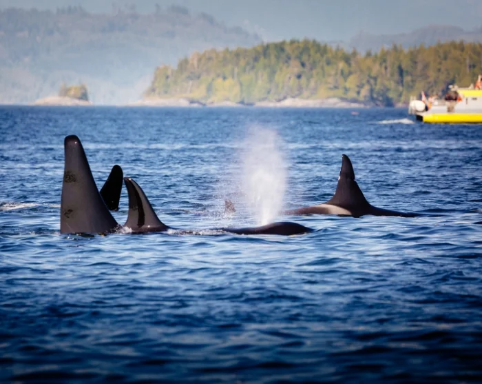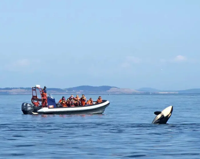 Machen Sie eine Walsafari in Begleitung begeisterter Meeresbiologen rund um Victoria mit und erleben Sie die vielfältige Tierwelt in den Seegebieten der Umgebung. In den Seegebieten bei Juan de Fuca und Haro leben Schwertwale, Buckelwale und häufig auch Zwergwale und Grauwale. In der Hochsaison von April bis Oktober liegt die Chance, Wale zu sehen, bei mehr als 95 %.