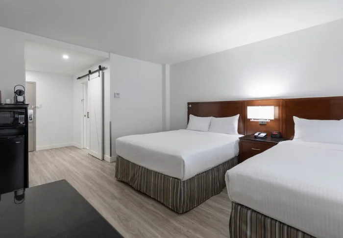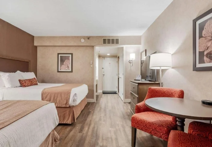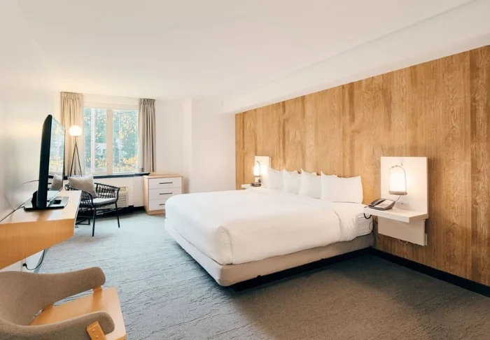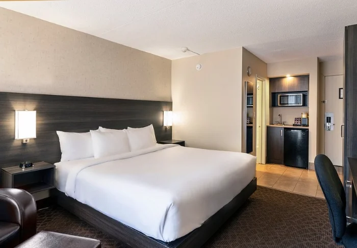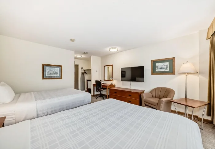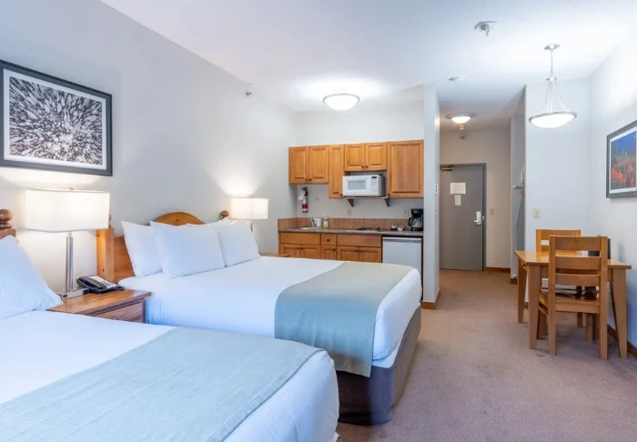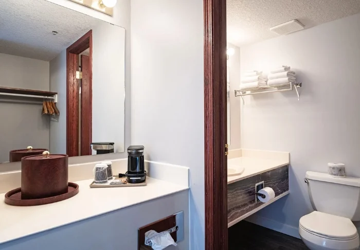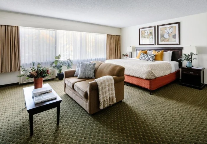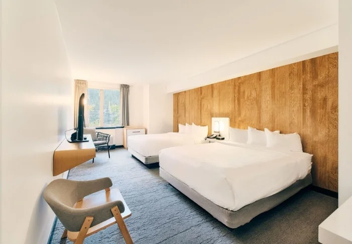 Das Hotel verfügt über 99 im klassischen kanadischen Stil mit Holzmöbeln, in gedämpften Farben und netter Atmosphäre eingerichtete Zimmer. Alle Zimmer sind mit TV, kostenlosem WLAN, Klimatisierung, Kaffeemaschine, Minibar und einem eigenen Badezimmer ausgestattet.