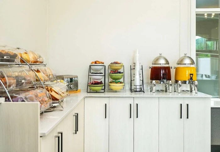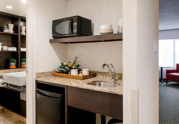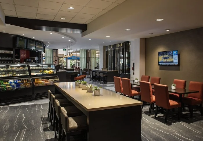 Das Hotel hat kein eigenes Restaurant, sondern ein Weinbistro mit Selbstbedienungsautomat und kooperiert mit den Restaurants in der näheren Umgebung, wenn Sie die kanadische Küche probieren möchten. Leichte Snacks oder Getränke bekommen Sie in dem rund um die Uhr geöffneten Hotelkiosk.