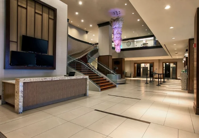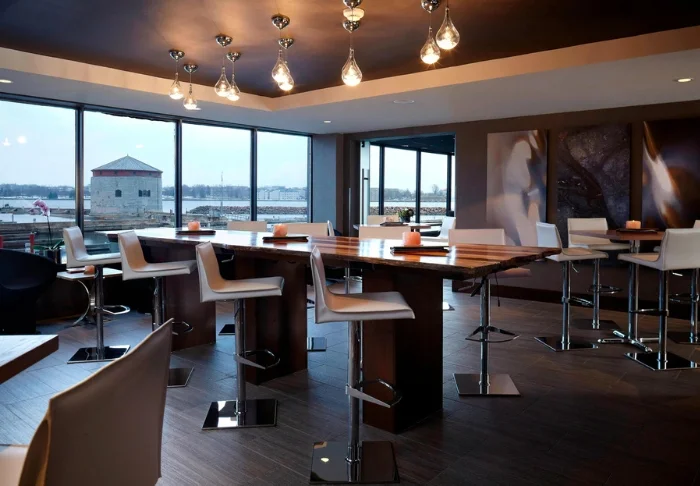 Das Delta Hotels Kingston Waterfront befindet sich im Zentrum des historischen Downtown Kingston und mit direkter Aussicht auf das Hafenviertel der Stadt und Lake Ontario. Das Hotel liegt inmitten des maritimen Flairs und historischen Charmes der Stadt, Sie können am Wasser entlangbummeln, Geschäfte und Restaurants in wenigen Minuten erreichen.