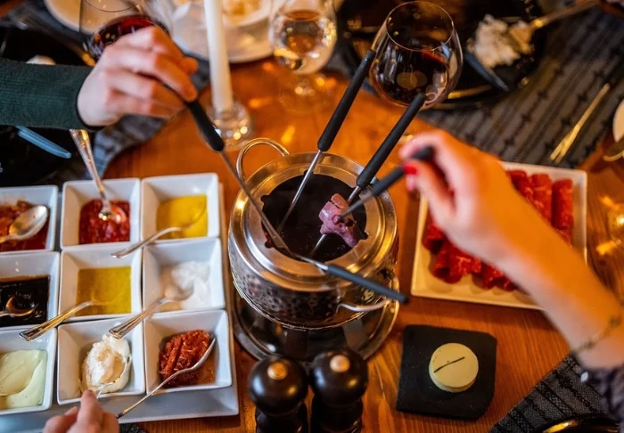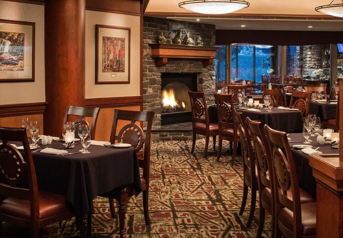 Das Hotel verfügt über eine abwechslungsreiche Auswahl an Essensmöglichkeiten, von elegant bis ganz entspannt. Das Dining Room ist das preisgekrönte Restaurant des Hotels und für seine klassische Atmosphäre und den beeindruckenden Weinkeller mit mehr als 25.000 Flaschen bekannt. Dort werden französisch inspirierte moderne Speisen mit regionalen Zutaten serviert. Im Fondue Stübli gibt es ein authentisches, schweizerisches Fondue in gemütlichem Rahmen mit Holzeinrichtung und bei gedämpfter Beleuchtung. Im ungezwungenen Outpost Pub gibt es warme Pub-Speisen und Getränke in einer entspannten Atmosphäre. Die Sir Norman Lounge bietet sich für ein Glas Wein oder eine Kleinigkeit vor dem Kamin, häufig zu Live Klaviermusik an. Dort wird in den Nachmittagsstunden auch der klassische Afternoon Tea mit Kleingebäck und Süßigkeiten serviert.