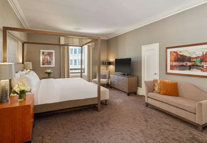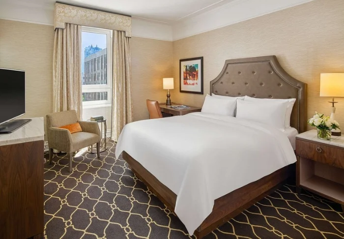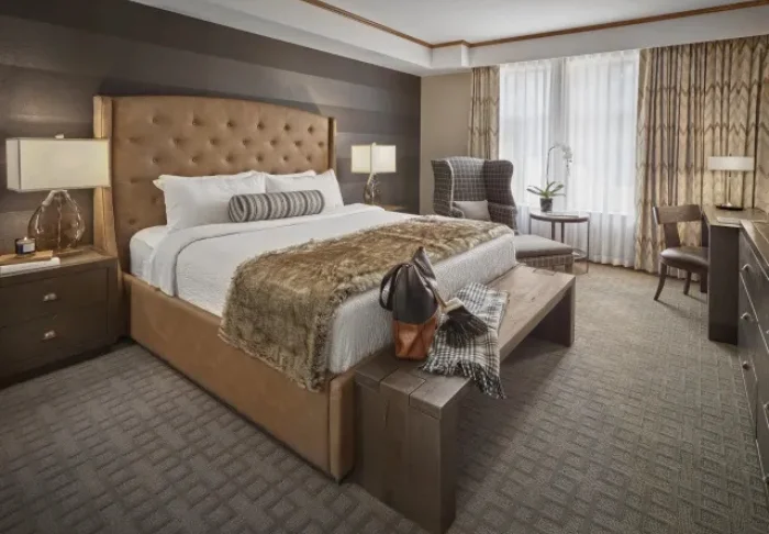 Das Fairmont Palliser heißt Sie in einem historischen Hotel aus dem Jahr 1914 willkommen, das heute mit liebevoll erhaltenen Details im edwardianischen Stil beeindruckt: Hohe Decken, Holzvertäfelungen und Säulen empfangen Sie bereits in der Lobby. Der historische Charme setzt sich auch in den Zimmern fort, die in warmen Farben und mit klassischen Holzmöbeln eingerichtet sind. Alle Zimmer verfügen über Klimaanlage, Minikühlschrank, Kaffee- und Teezubereitungsmöglichkeiten, kostenloses WLAN, TV sowie ein eigenes Bad mit Haartrockner, Bademänteln und einer kostenfreien Auswahl an Pflegeprodukten.