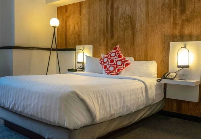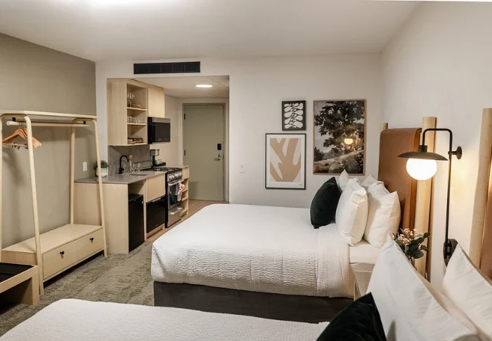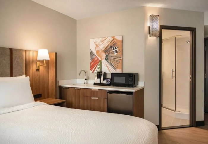 Jasper Inn verfügt über 141 Zimmer. Prinzipiell wird ein Standardzimmer mit Möbeln in erdigen Farbtönen und herrlichem Lichteinfall durch die großen Fenster angeboten. Das Zimmer ist außerdem mit Kaffeemaschine und Minibar ausgestattet, in der Sie Snacks für das Abenteuer am nächsten Tag kühl aufbewahren können.