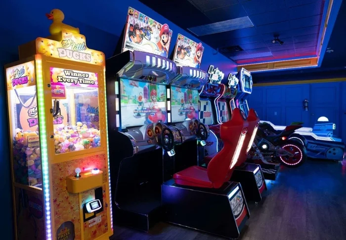 Zum Hotel gehört auch ein Innenhof, der für Familien mit Kindern ein reines Schlaraffenland ist. Hier gibt es einen beheizten Pool, 2 Whirlpools, einen Spielplatz drinnen und eine Golf-Lounge mit Simulatoren.