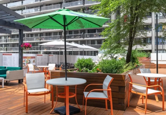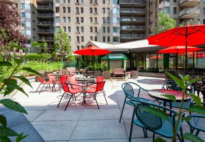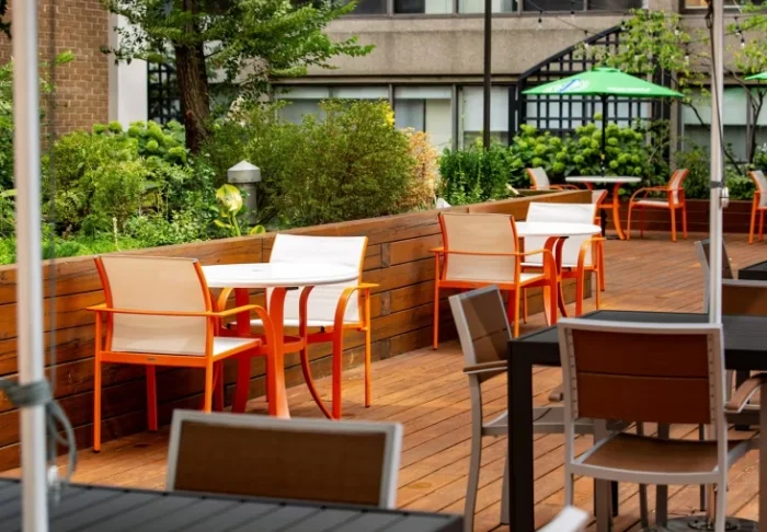 Wenn Sie einen Streifzug durch die Straßen von Montreal gemacht haben, können Sie in Ihr Hotel zurückkehren und sich bei einer Tasse Kaffee im Innenhof erholen. In den warmen Sommermonaten können Sie sich außerdem im kleineren Außenpool erfrischen oder die Beine hochlegen und ein Buch in einem der Liegestühle lesen.