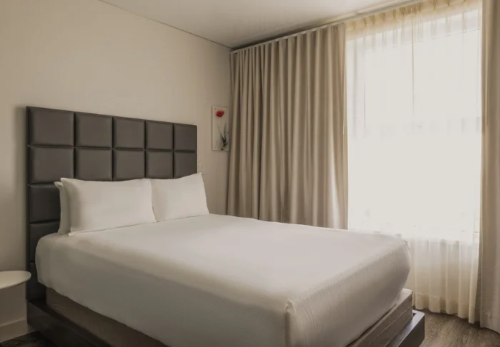 Das Hotel verfügt über 162 modern in gedämpften Farben und mit Holzmöbeln eingerichtete Zimmer. Alle sind mit TV, kostenlosem WLAN, Kaffeemaschine, Minibar und einem eigenen Badezimmer ausgestattet.