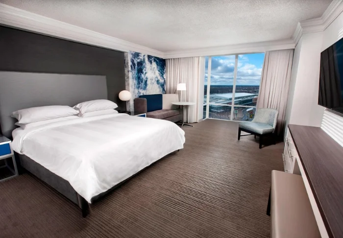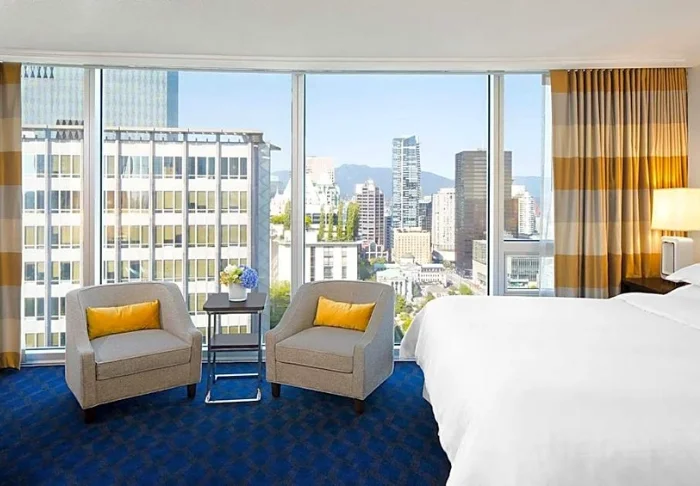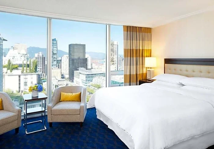 Das Sheraton Wall Centre verfügt über 700 elegante Zimmer, alle mit großen Panoramafenstern und viel Tageslicht. Die Zimmer sind modern in hellen Farbtönen gestaltet, stilvoll möbliert und verfügen über TV, Klimaanlage, Minikühlschrank, Tee- und Kaffeezubereitungsmöglichkeiten sowie ein eigenes Bad.