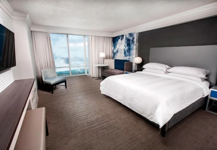 Träumen Sie davon, den Tag in unmittelbarer Nähe der majestätischen Niagarafälle zu beginnen und zu beenden? Dann sollten Sie sich für ein Upgrade zum Niagara Falls Marriott on the Falls im beliebten Fallsview-Gebiet entscheiden. Dieses Hotel ist ideal für Reisende, die ihren Besuch an den Niagarafällen optimal nutzen wollen, wo man die Natur erlebt, sobald man das Hotel verlässt. Die Aussicht hat man auch an mehreren Stellen von drinnen durch die zahlreichen Panoramafenster des Hotels. Die beliebten Bootstouren und der schöne Garten Niagara Parks sind fußläufig erreichbar und in der Umgebung gibt es endlos viel Natur und Erlebnismöglichkeiten.