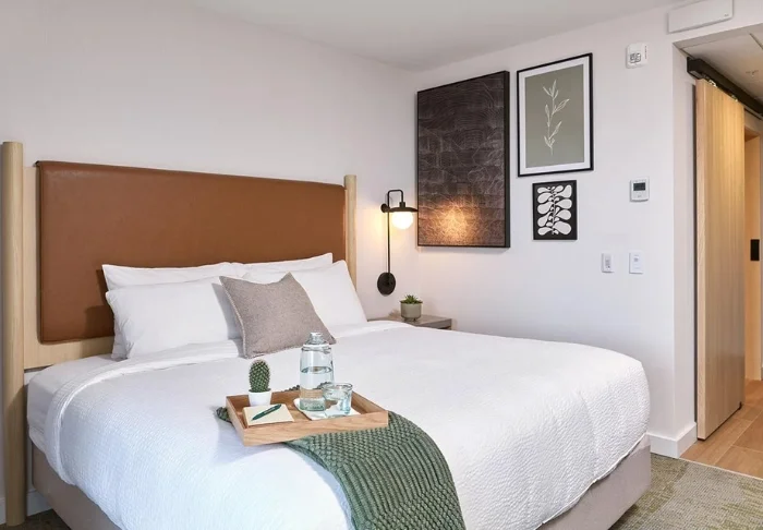 Das Hotel hat 201 moderne, schlicht und stilvoll eingerichtete Zimmer. Alle Zimmer sind mit TV, kostenlosem WLAN, Kaffeemaschine, Minibar, Schreibtisch und einem eigenen Badezimmer mit einer beschränkten Auswahl ökologischer Toilettenartikel und Föhn ausgestattet.