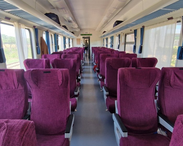 Die in Kenia eingesetzten Züge sind modern und komfortabel, ausgestattet mit bequemen Sitzen, Toiletten und der Möglichkeit, unterwegs Getränke und Snacks zu erwerben.
