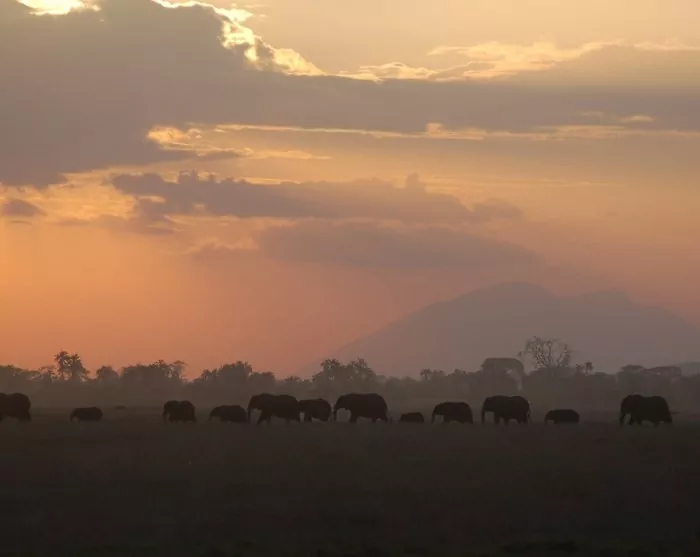 Der Amboseli-Nationalpark ist der kleinste Nationalpark Kenias, der aber ganz große Erlebnisse bietet. Ein ganz klassisches Bild von Afrika ist ein Foto von einer großen Elefantenherde mit dem Kilimandscharo im Hintergrund. Dann weiß man, dass man in Afrika ist. Wir empfehlen Ihnen, früh aufzustehen und den Sonnenuntergang zu bewundern. Den Berg sieht man häufig zu Beginn des Tages am besten.