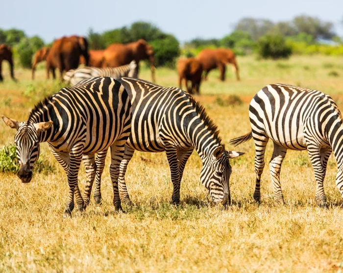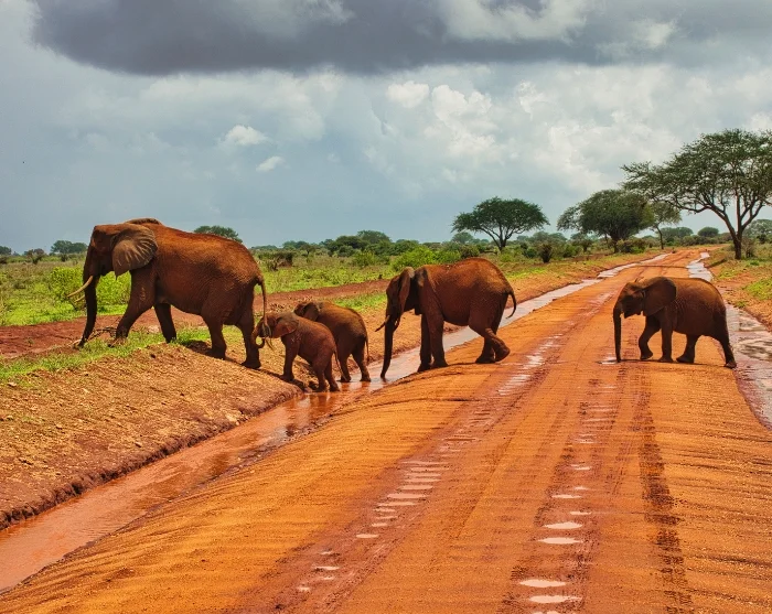 Unterwegs, von Nairobi nach Mombasa, halten Sie für drei Nächte im größten Nationalpark Kenias, Tsavo, mit ausreichend Zeit für Pirschfahrten und um die beeindruckende Natur zu genießen.