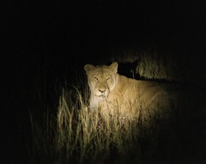 Am Abend wartet noch ein einzigartiges Erlebnis auf Sie, das man nicht direkt im Nationalpark machen kann: ein abendlicher Game Drive. Ein Großteil der Tiere in der afrikanischen Savanne ist nachts am aktivsten. Dann brennt die Sonne nicht vom Himmel. Die Grasfresser kommen hervor, um im Schutz der Dunkelheit zu fressen. Das wissen die schlauen Raubkatzen natürlich genau. Während die Samtpfoten tagsüber meist im Schatten liegen und sich ausruhen, hat man am Abend oft das Glück, sowohl Löwen als auch Hyänen bei ihrer Wanderung durch den Busch beobachten zu können.