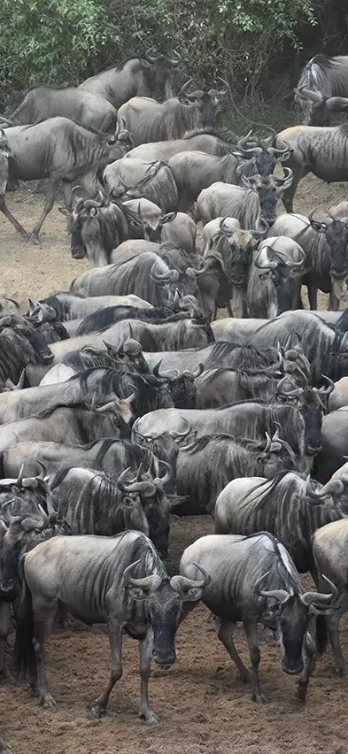In den nächsten Tagen erleben Sie jede Menge Tiere hautnah von dem schützenden Jeep aus. Von Juli bis Oktober kann man die 1.200 km lange Wanderung der über eine Million Gnus und der Hunderttausenden an Zebras sowie jede Menge Thompsongazellen auf der kenianischen Seite der Great Migration bestaunen. Während dieser Wanderung fallen viele den enormen Nilkrokodilen zum Opfer, wenn sie den Mara River durchqueren.
