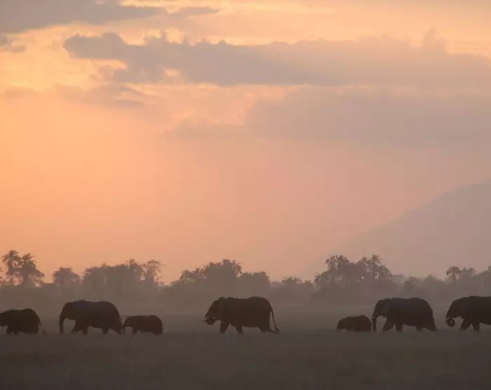 Obwohl der Amboseli-Nationalpark einer der kleinsten Nationalparks Kenias ist, gehören die Naturerlebnisse zu den größten. Der Park ist besonders berühmt für seine atemberaubende Aussicht auf den höchsten Berg Afrikas, den Kilimandscharo, und für seine vielen Elefanten. Der Amboseli-Nationalpark ist jener Ort auf der Welt, an dem man zuerst anfing, Elefanten zu studieren. Hier entdeckte man, dass Elefanten sowohl Geburten feiern als auch tote Familienmitglieder betrauern. Vieles, von dem, was wir heute über Elefanten wissen, verdanken wir der Forschung hier im Park.
