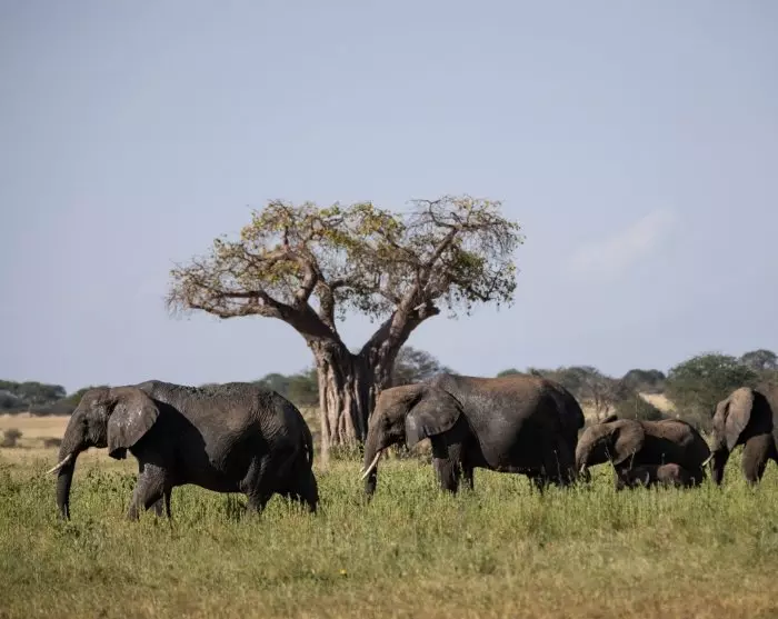 Der Tarangire-Nationalpark ist, genau wie der Amboseli-Nationalpark, berühmt für seine Elefanten. Während der Hintergrund der Fotos im Amboseli-Nationalpark aber aus Akazienbäumen besteht, besteht er im Tarangire-Nationalpark aus enormen uralten und durch und durch majestätischen Affenbrotbäumen, welche die Umgebung dominieren.