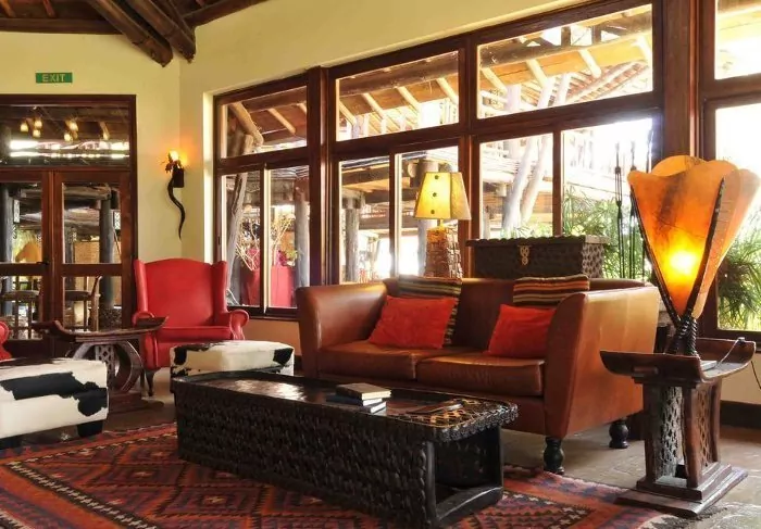 Die Lodge hat ihr eigenes Wasserloch, das die Tiere anlockt. Für die Menschen gibt es einen tollen Pool, in dem man sich erfrischen kann. Außerdem findet man hier ein Restaurant, eine Poolbar, und man kann eine Massage buchen. Auch ein kleiner Souvenirladen befindet sich in der Lodge.