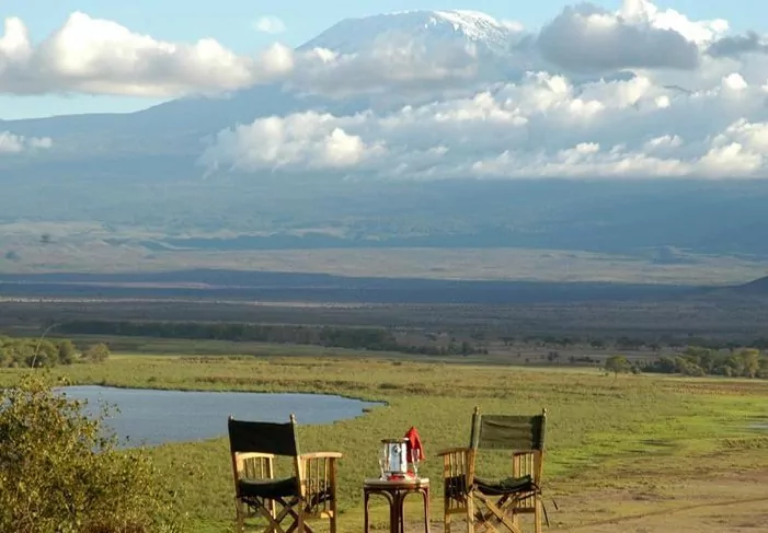 Das Camp liegt direkt am Amboseli-Nationalpark und bietet eine wunderschöne Aussicht auf den Kilimandscharo.