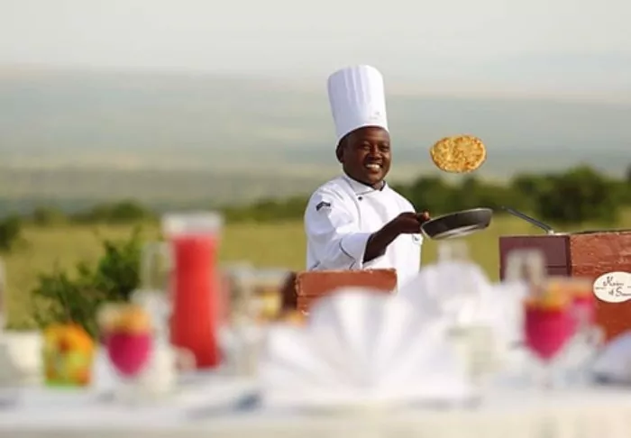 Wenn man da so sitzt, im weichen Stuhl mit einer herrlichen Tasse Kaffee in der Hand, überlegt man einen Moment lang, warum man eigentlich heute einen Game Drive machen sollte. Alles ist doch direkt vor der Nase. Sie haben freie Sicht auf die Ebenen der Masai Mara auf der anderen Seite des Flusses, und in regelmäßigen Abständen fragt ein Kellner, ob man noch etwas braucht.