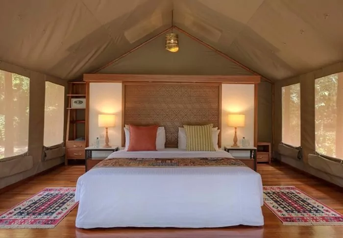 Die Zelte sind unglaublich geräumig. Trotz der Canvas-Wände verfügt jedes über eine richtige Tür und ein eingebautes Badezimmer, sodass Sie nicht auf das Gefühl verzichten, der Natur nahe zu sein.