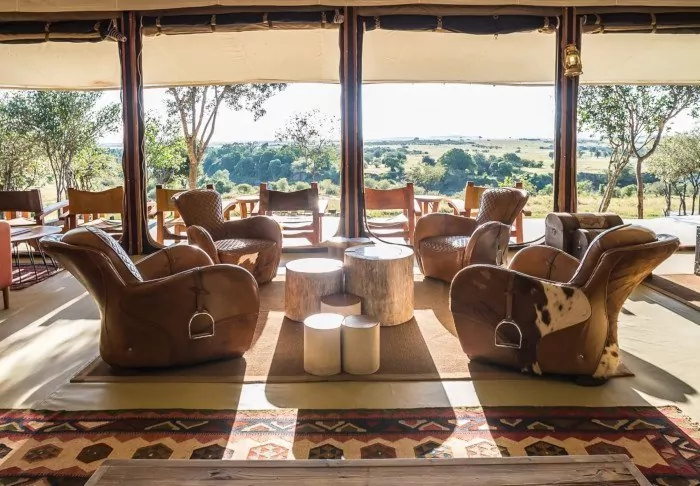 Die Zelte sind wie im River Camp angeordnet, und die Feuerstelle ist mit ihren bunten Polstern und der fantastischen Aussicht auf die Masai Mara genauso malerisch. Bar und Restaurant bieten ebenfalls eine luftige, helle und geräumige Atmosphäre.