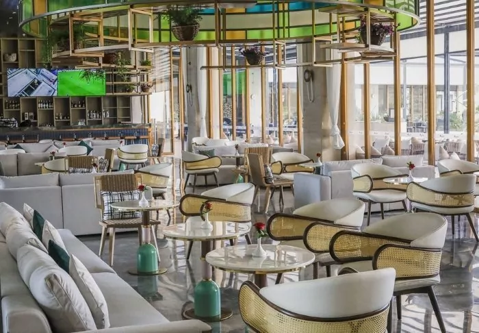 Die Lounge, die Bar und das Restaurant sind besonders geräumig. Die großen Fenster sorgen für viel Licht und vermitteln ein Gefühl von Weite und Freiheit.