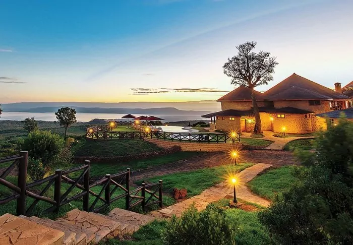 Die 4-Sterne-Lodge Lake Nakuru Sopa Lodge liegt an einem Hang im Großen Afrikanischen Grabenbruch und bietet eine fantastische Aussicht auf den Nationalpark Lake Nakuru. Abends sehen Sie die sanften Lichter der Stadt Nakuru auf der anderen Seite. Durch die Lichter sieht die absolute Dunkelheit im Nationalpark fast noch faszinierender aus. Tagsüber haben Sie eine atemberaubend schöne Aussicht auf die grüne Landschaft, die Teil eines der schönsten Nationalparks in Kenia ist.