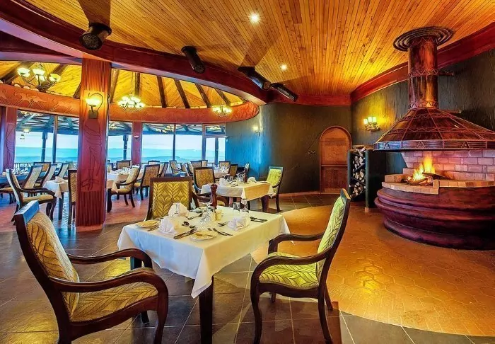 Das Hauptgebäude bietet eine beeindruckende Lounge, eine Bar und ein Restaurant. An kühlen Abenden wird draußen ein Feuer gemacht, und an warmen Abenden können Sie auf der großen Terrasse draußen ein Getränk genießen.