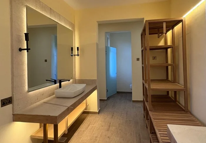 Die Zimmer liegen in kleinen Lauben, je 6 Zimmer in einem „Haus“, wobei jedes Haus nur zwei Etagen hat. Alle „Häuser“ sind miteinander und mit dem Hauptgebäude durch viele kleine erhabene Wege miteinander verbunden, die am Abend herrlich beleuchtet sind. Die Zimmer sind geräumig und verfügen alle über ein eigenes Badezimmer und eine eigene Veranda.