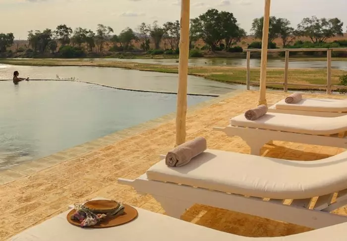 Alle 18 Zelte bieten einen herrlichen Blick auf den Galana-Fluss, Kenias zweitgrößten Fluss. Jedes Zelt verfügt über einen eigenen Balkon, der Ihnen die bestmögliche Aussicht auf den Fluss bietet. Selbst vom Pool aus können Sie den Fluss überblicken.