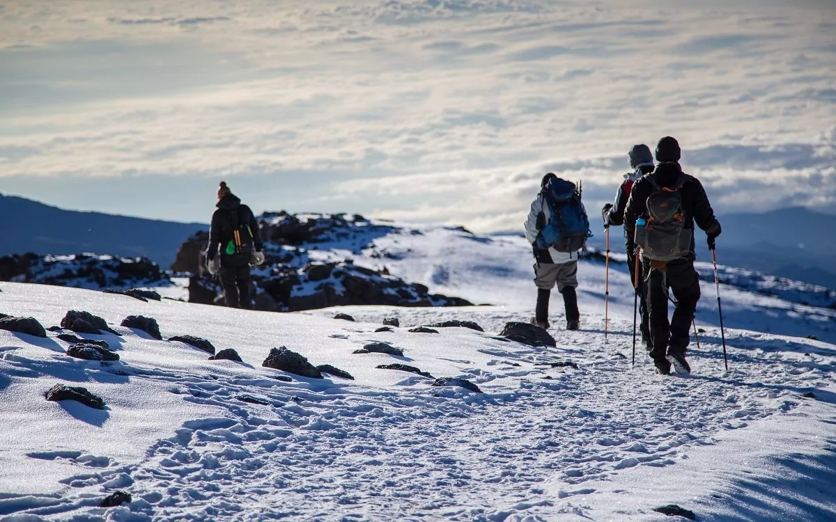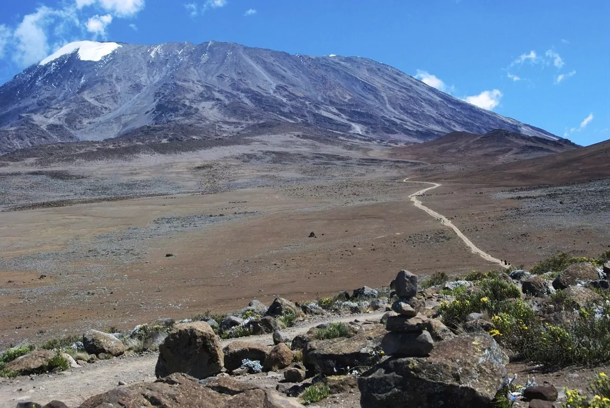 Heute können Sie sich auf eine schöne, abwechslungsreiche Landschaft freuen. Sie wandern weiter durch die Heidelandschaft, die später zu trockenem, kargem Hochland wird, das den Mawenzi und den Kibo verbindet. Die kleinen und großen Vulkansteine sind Zeugen der früheren vulkanischen Aktivität des Berges. Der letzte Teil der Etappe zu den Kibo Huts ist recht steil und anstrengend. Nach der Ankunft an den Kibo Huts müssen Sie unbedingt gleich Ihre Ausrüstung und warme Kleidung für den Aufstieg am nächsten Tag auf den Gipfel zurechtlegen. Nehmen Sie Trinkwasser in einer Thermoflasche mit, damit es nicht zu Eis gefriert. Gehen Sie früh zu Bett, um für die Herausforderung am nächsten Tag gut ausgeruht zu sein.