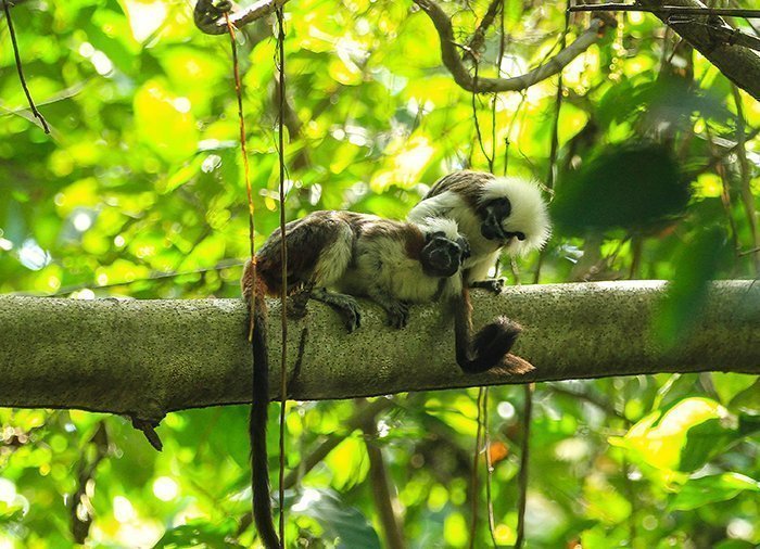 Etwas nördlich von Santa Marta befindet sich der beliebte Tayrona-Nationalpark. Der 150 m² große Park bietet grünen Dschungel mit einer interessanten Flora und Fauna. Mit ein wenig Glück können sie mehre Arten an Affen und exotischen Vögeln beobachten. Vom Eingang des Nationalparks wandern Sie rund 1,5 Stunden zu den wunderschönen goldenen Stränden der Karibikküste.