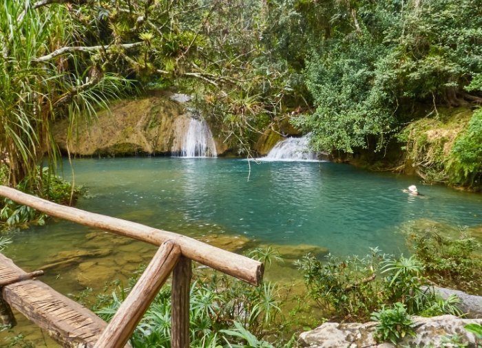 Es geht zu den grünen Guamuhaya-Bergen, dem westlichen Teil der Escambray-Bergkette im Guanayara Park. Der Park ist für seine grüne, zauberhafte Natur mit Wasserfällen und natürlichen Wasserbecken bekannt.