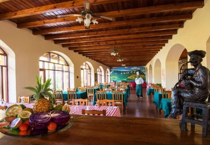 Das Restaurant bietet kreolische und internationale Küche. Von hier aus hat man eine großartige Aussicht auf Stadt und Berge.