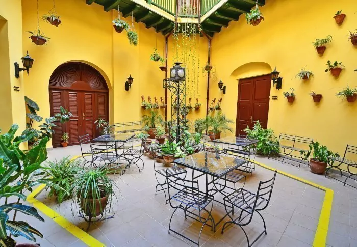 Im gemütlichen Innenhof können Sie eine leckere Mahlzeit vom Restaurant des Hotels oder ganz bequem einen Mojito von der Bar genießen. Sie können das Leben am Plaza de la Solidaridad beobachten, während Sie Ihr Frühstück, Mittag- oder Abendessen im Restaurant des Hotels einnehmen, in dem man sowohl drinnen als auch draußen sitzen kann.