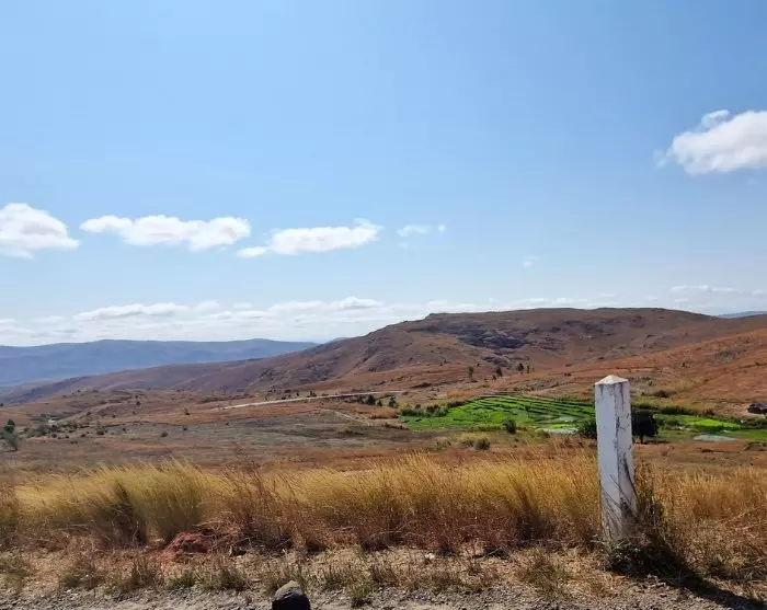 Vom Anja-Reservat aus fahren Sie weiter in südwestlichere Richtung, und die Landschaft ändert sich erneut. Sie fahren durch die Berge und hinauf in die Stadt Ihosy – eine etwa zweistündige Fahrt. Sie befinden sich nun auf einem Hochlandplateau, dem Horombe Plateau, das die Heimat des Bara-Stammes ist.