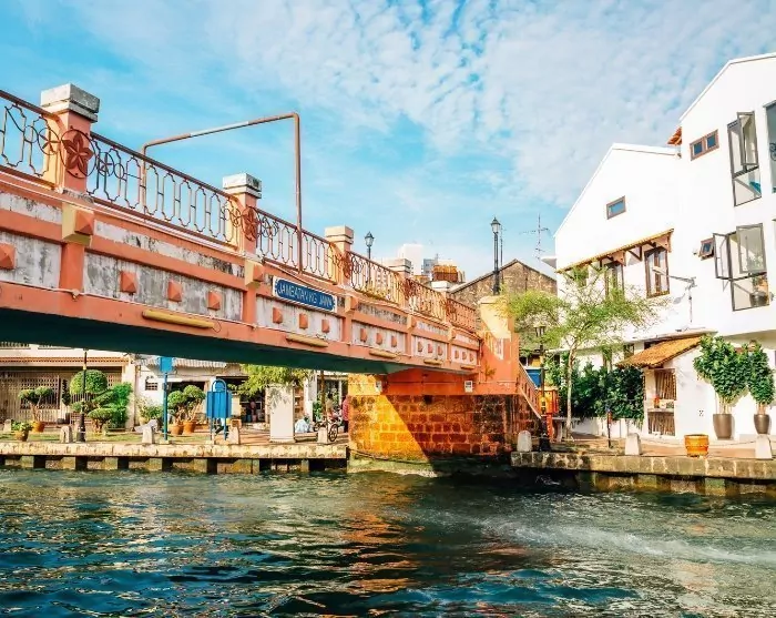 Wenn Ihr kulinarisches Verlangen gestillt ist, geht die Tour weiter, indem Sie an Bord eines kleinen, überdachten Bootes für eine 40-minütige Fahrt entlang der historischen Routen des Melaka-Flusses gehen. Seit dem 15. Jahrhundert war der Fluss ein zentrales Handelszentrum für ganz Südostasien. Heute bietet er eine andere Perspektive auf die charmante Stadtlandschaft Melakas. Lehnen Sie sich zurück und genießen Sie die Aussicht auf gepflasterte Straßen, antike Brücken und bunte Kaufmannshäuser, während Sie auf dem Wasser vorbeigleiten.