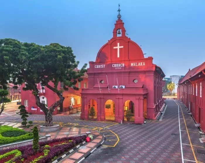 Als nächstes setzen Sie Ihre Reise zum charmanten Dutch Square fort, umgeben von blühenden Gärten, kunstvollen Laternenpfosten und den auffälligen rot gefärbten Gebäuden. Hier können Sie die 300 Jahre alte niederländische Kirche besuchen, die älteste protestantische Kirche Malaysias.