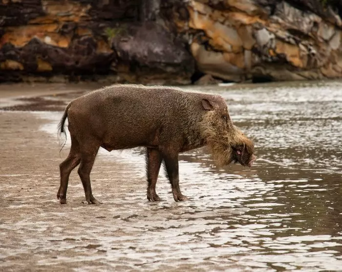 Trotz seiner beschaulichen Größe (15 km^2) bietet die Insel eine weitläufige Fläche an dichtem Regenwald, die Sie über zugängliche Dschungelpfade erkunden können. Hier treffen Sie auf eine überraschend diverse Tierwelt, einschließlich Nasenaffen, Bartschweine und Flughörnchen.
